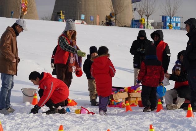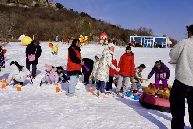 作为冬奥遗产活化利用的核心区域,石景山区始终以冬奥示范区建设为抓手,将“让冰雪运动进入寻常百姓家”的指示要求转化为具体实践。本次活动秉持“全民参与、趣味互动、安全有序”的原则,精心设置雪地保龄球、飞盘、雪地龙舟、雪域漂流、雪地挖宝、雪球大战六大冰雪打卡项目。雪地保龄球将传统运动与冰雪场地巧妙融合,参与者瞄准目标、奋力投掷,在精准竞技中感受别样乐趣;雪地飞盘轻松休闲、老少皆宜,大家在洁白雪地上舒展身姿、传递飞盘,尽享轻松愉悦的互动时光;雪地龙舟在平整雪道上展开比拼,依靠团队协同蹬地、步调一致向前行进,以道具整体过线为胜负标准,在竞速中体会同心协力的快乐;雪域漂流让参与者乘着雪圈畅快滑行,在起伏的雪道上感受冰雪运动的速度与激情;雪地挖宝充满探索惊喜,吸引大小朋友一同在雪地中寻觅宝藏,解锁趣味满满的游玩体验;雪球大战欢乐十足,大家在安全区域内友好嬉戏、轻松互动,在欢声笑语中感受冬日冰雪的独特魅力。各类项目兼具竞技性与趣味性,充分兼顾不同年龄段群体的参与需求,既延续了冬奥运动的活力与魅力,又以低门槛、高趣味性的特点收获群众广泛好评。这些接地气的冰雪互动项目,让曾经遥不可及的冰雪运动变得触手可及,生动诠释了冬奥示范区 “全民共享冬奥成果” 的建设理念。